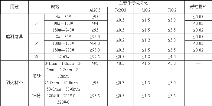 產(chǎn)品粒度按國際標(biāo)準(zhǔn)以及各國標(biāo)準(zhǔn)生產(chǎn),可按用戶要求粒度進(jìn)行加工。通用粒度號為 F4~F320,其化學(xué)成份視粒度大小而不同。突出的特點(diǎn)是晶體尺寸小耐沖擊,因用自磨機(jī)加工破碎,顆粒多為球狀顆粒,具有純度高,質(zhì)地致密,堆積密度大,自銳性強(qiáng),韌性好,磁性物含量特低的特點(diǎn),用其制成的磨具磨削鋒利,發(fā)熱率低,磨削比高,且使用時(shí)沾附少;制成的燒結(jié)磨具具有燒成后顏色深藍(lán)、不起網(wǎng)狀裂紋、無銹斑的特點(diǎn),適用于制造陶瓷、樹脂高固結(jié)磨具以及研磨、拋光等。